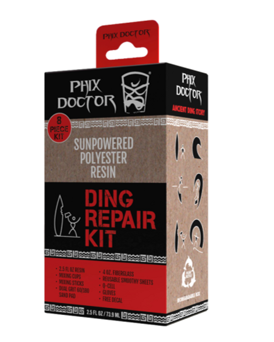 Phix Doctor’s SunPowered Polyester ding repair kit is stocked with premium brand Silmar sanding resin, gloves, q-cell and many other helpful items you won’t find in other kits. Reduce your environmental impact with earth friendly kraft paper biodegradable outer box and low impact flex style resin containers. Flexible packaging has more preferable environmental attributes for carbon impact, fossil fuel usage, water usage, product-to-package ratio, as well as material to landfill, when compared to other package formats.