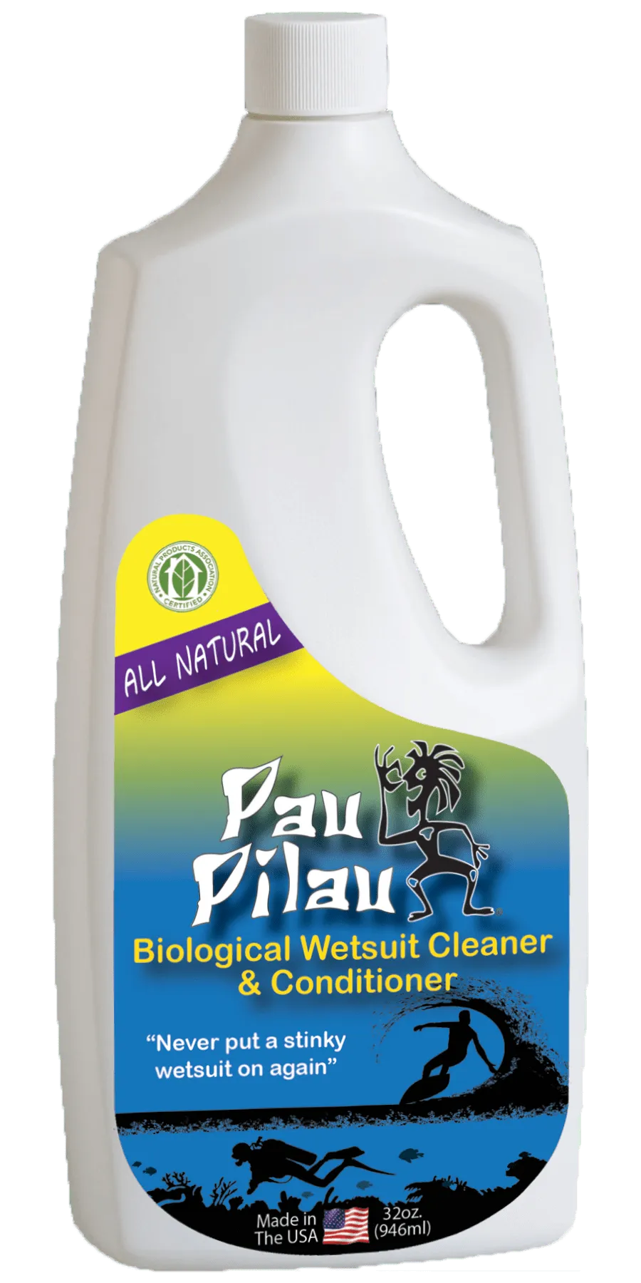 Pau Pilau is offering water sports enthusiasts an effective solution to keeping your wetsuit looking and smelling great. Our wetsuit cleaner is easy to use and leaves your wetsuit with a fresh lemon scent.